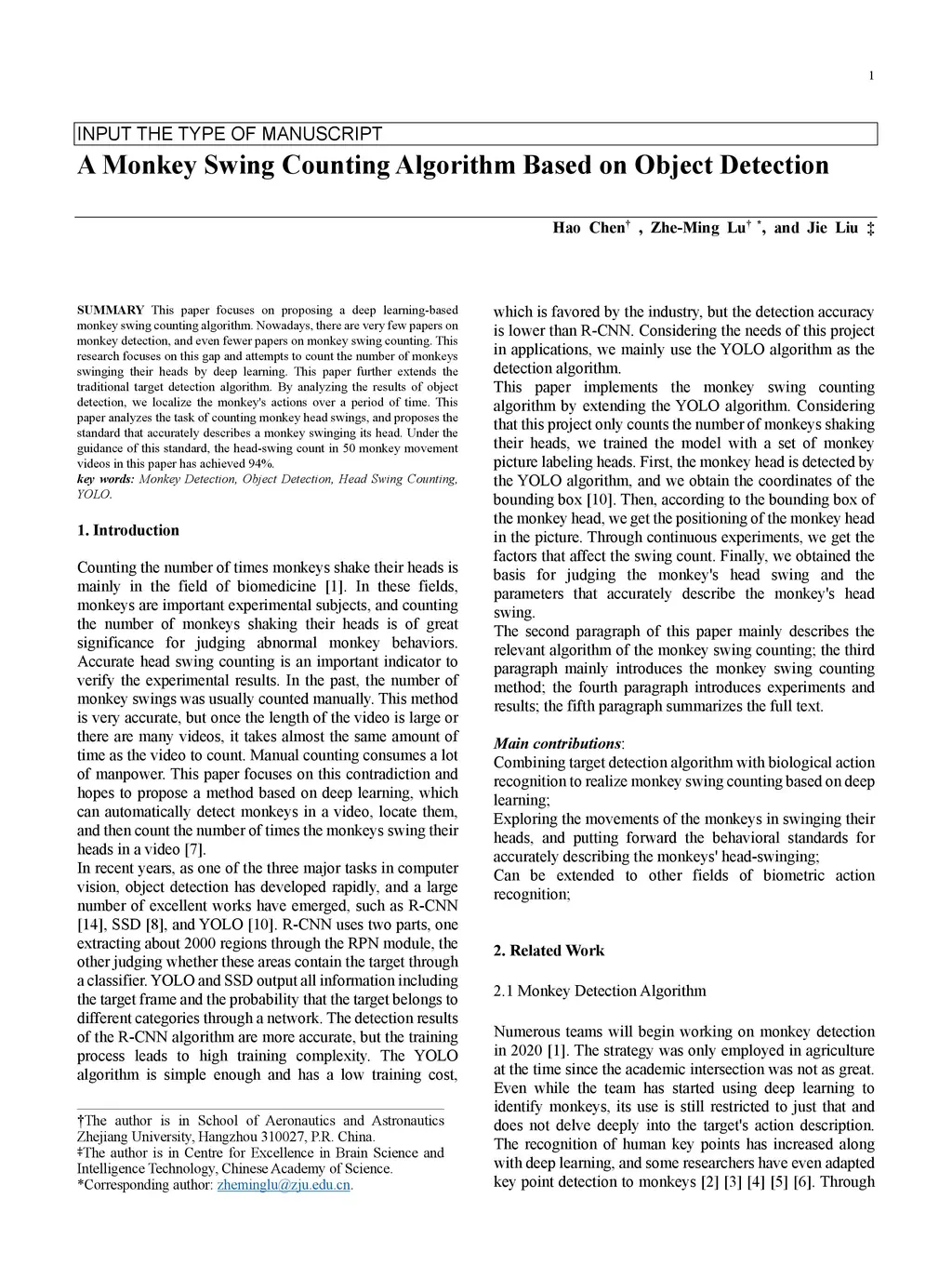 A Monkey Swing Counting Algorithm Based on Object Detection