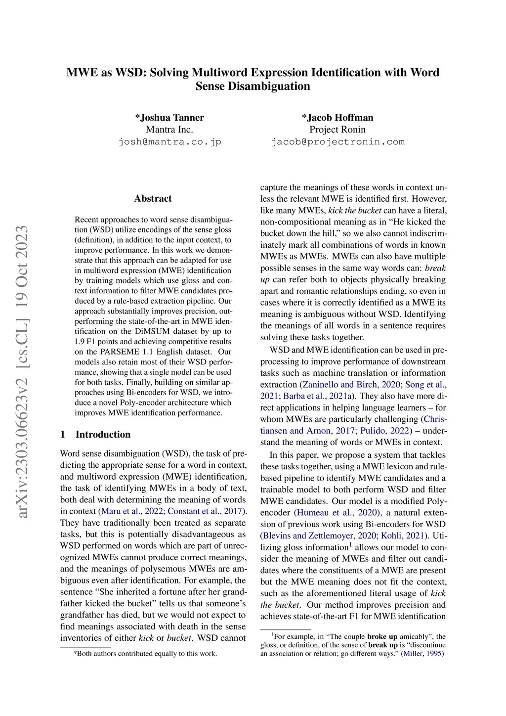 MWE as WSD: Solving Multiword Expression Identification with Word Sense
