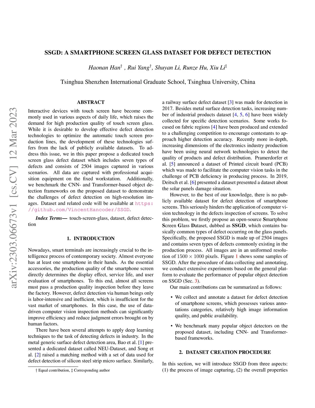 SSGD: A smartphone screen glass dataset for defect detection