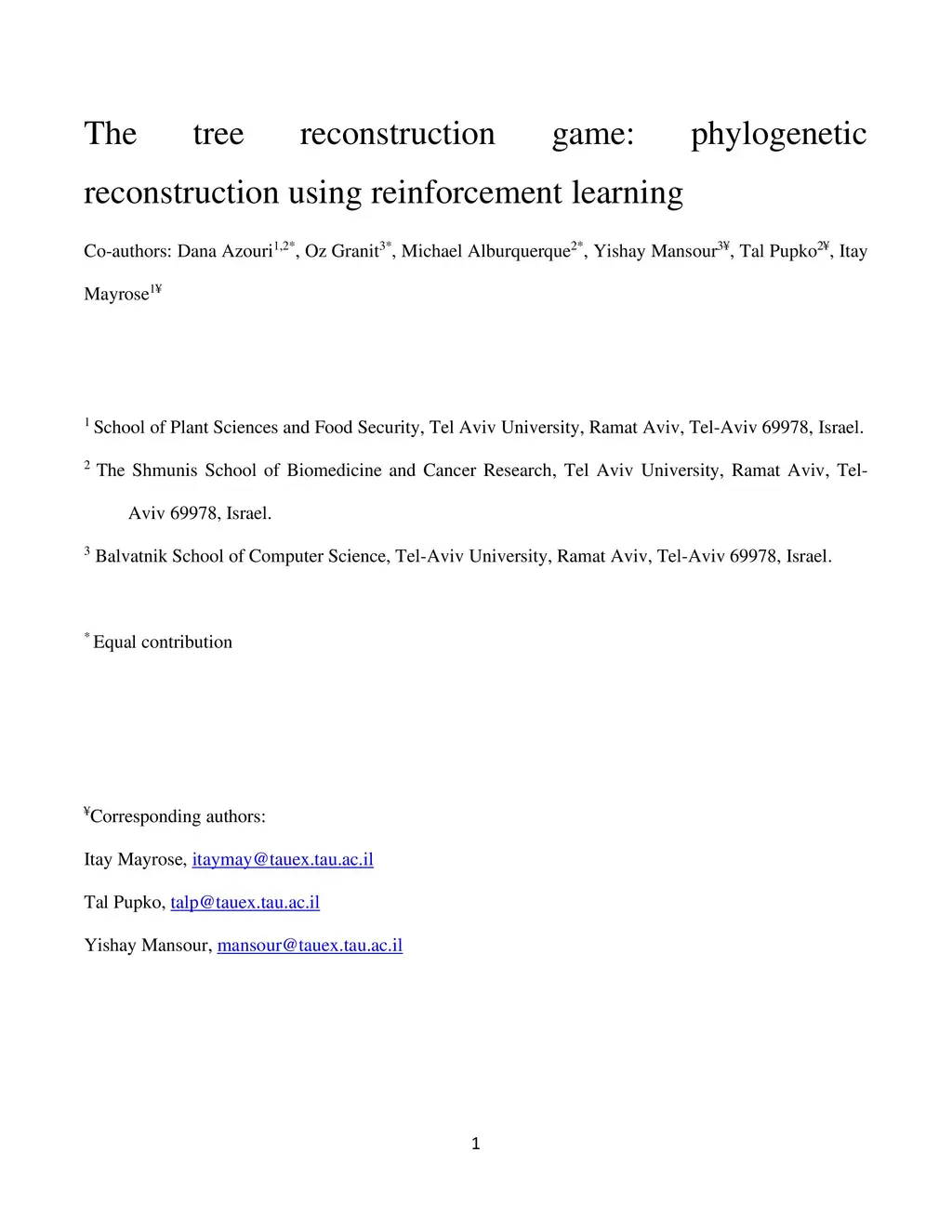 We propose a reinforcement-learning algorithm to tackle the challenge of reconstructing phylogenetic trees. The search for the tree that best describes the data is algorithmically challenging, thus all current algorithms for phylogeny reconstruction use various heuristics to make it feasible. In this study, we demonstrate that reinforcement learning can be used to learn an optimal search strategy, thus providing a novel paradigm for predicting the maximum-likelihood tree. Our proposed method does not require likelihood calculation with every step, nor is it limited to greedy uphill moves in the likelihood space. We demonstrate the use of the developed deep-Q-learning agent on a set of unseen empirical data, namely, on unseen environments defined by nucleotide alignments of up to 20 sequences. Our results show that the likelihood scores of the inferred phylogenies are similar to those obtained from widely-used software. It thus establishes a proof-of-concept that it is beneficial to optimize a sequence of moves in the search-space, rather than optimizing the progress made in every single move only. This suggests that a reinforcement-learning based method provides a promising direction for phylogenetic reconstruction.