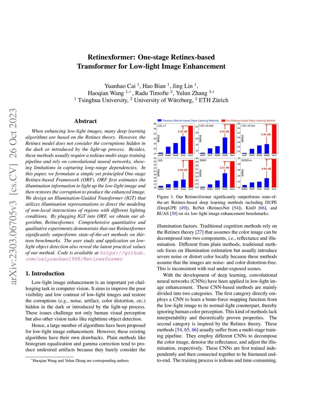 Retinexformer: One-stage Retinex-based Transformer for Low-light Image