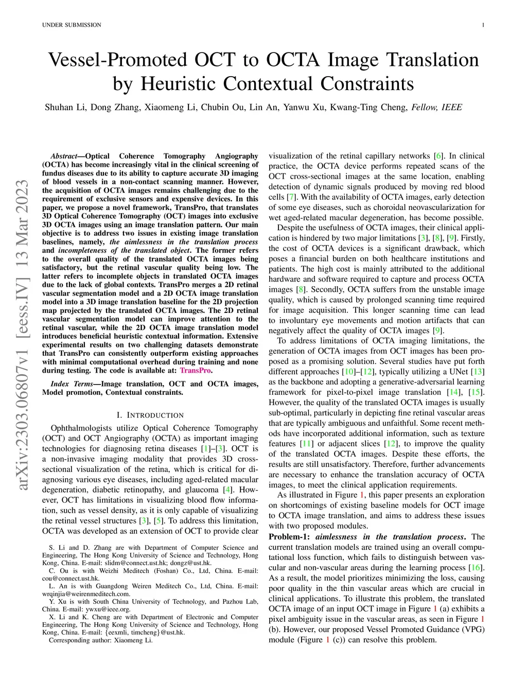 Vessel-Promoted OCT to OCTA Image Translation by Heuristic Contextual