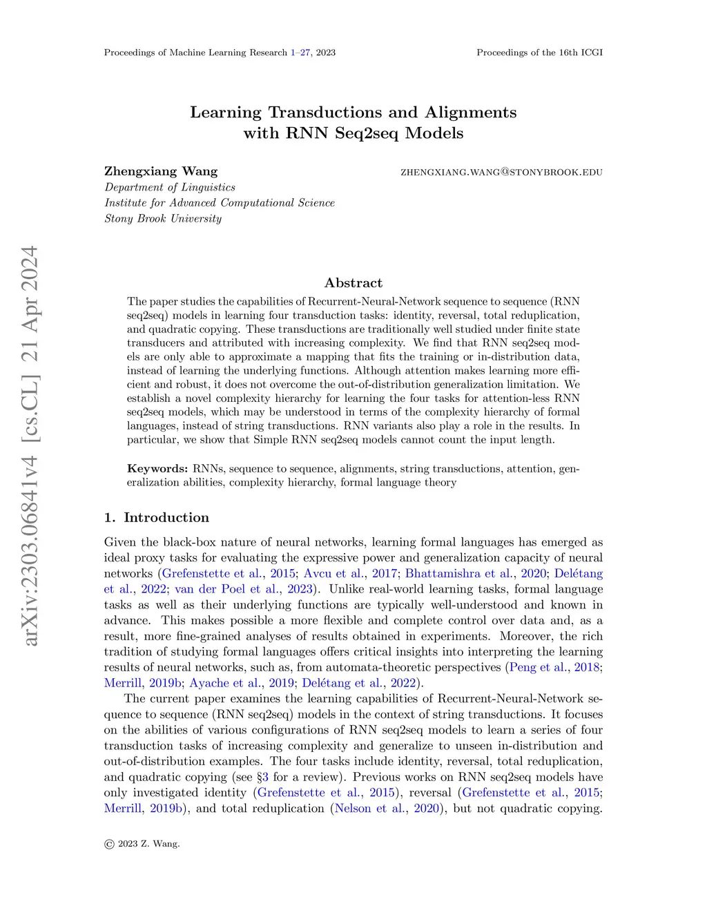 Learning Transductions and Alignments with RNN Seq2seq Models