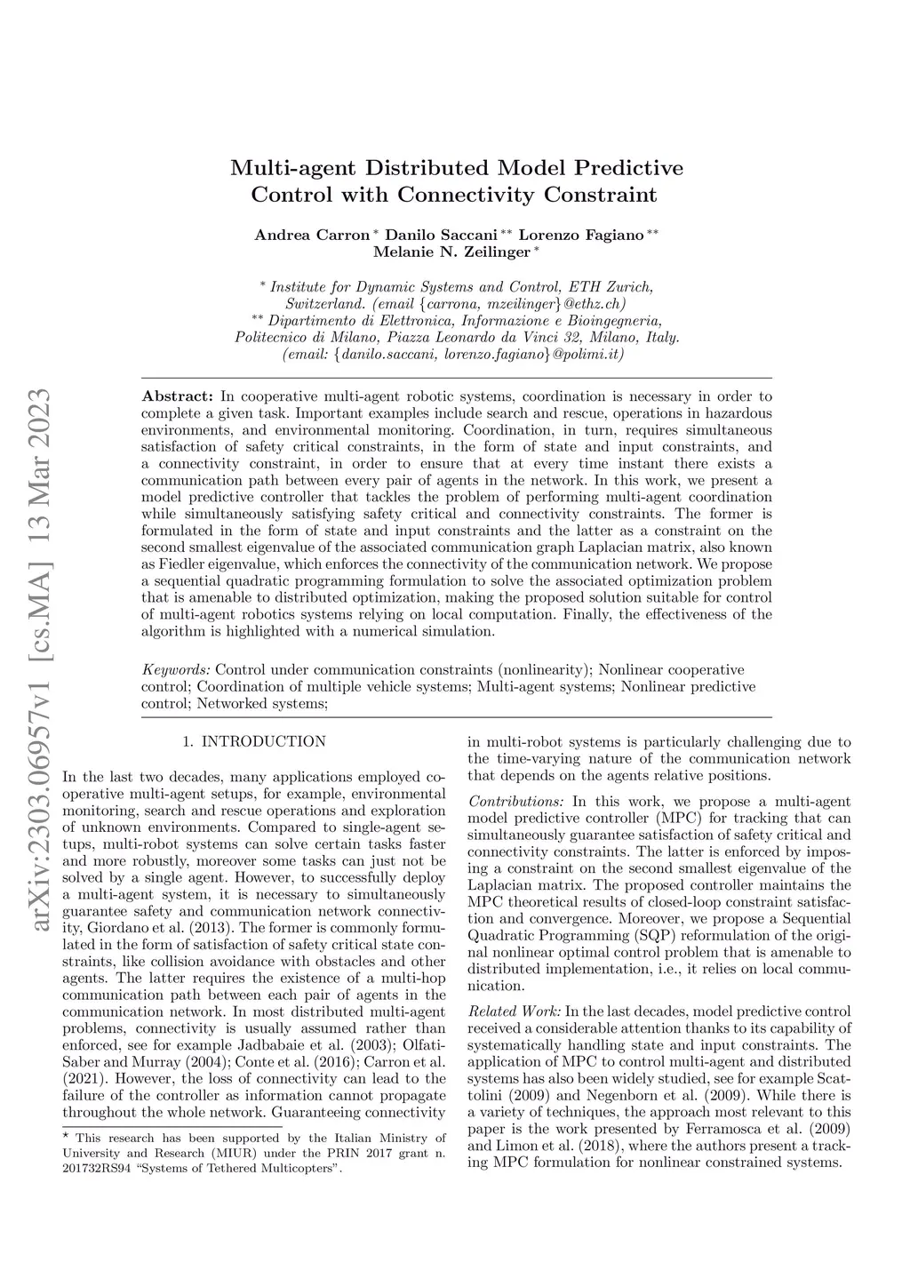 Multi-agent Distributed Model Predictive Control with Connectivity