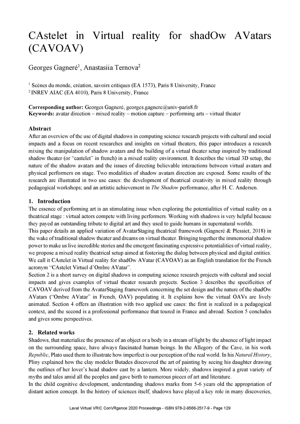 CAstelet in Virtual reality for shadOw AVatars (CAVOAV)