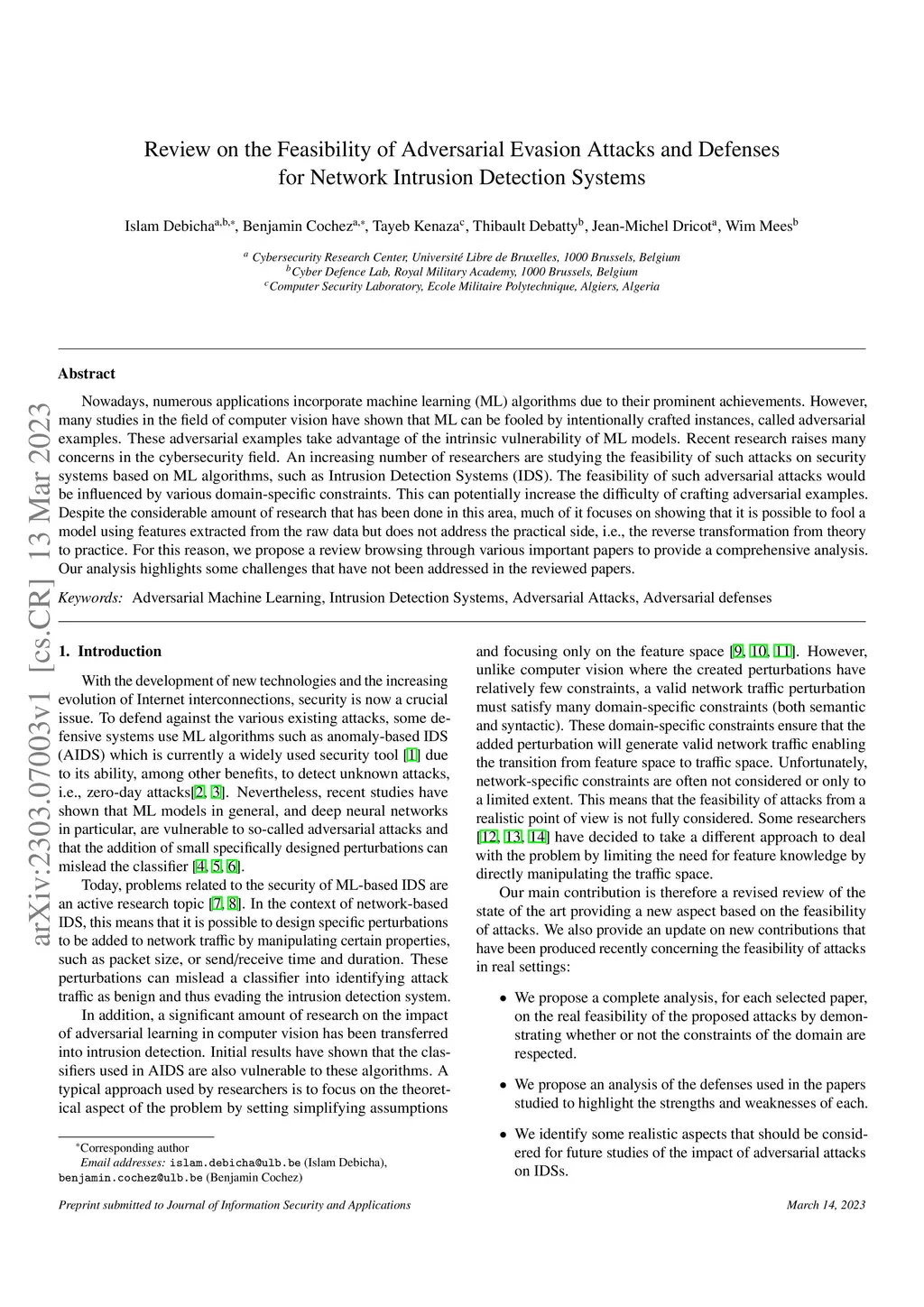 Review on the Feasibility of Adversarial Evasion Attacks and Defenses