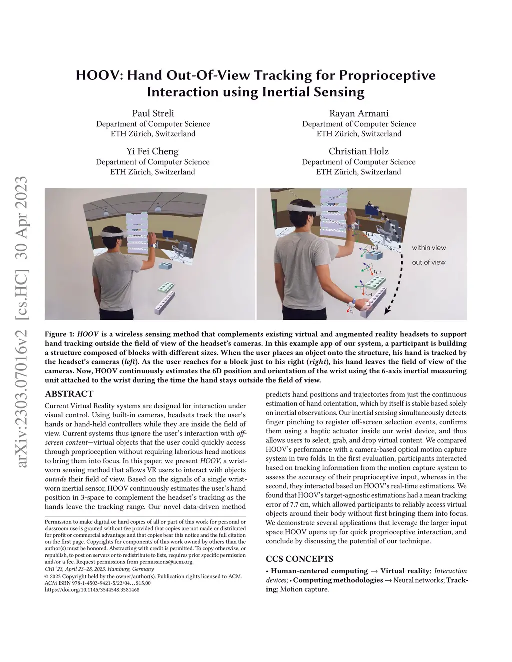 HOOV: Hand Out-Of-View Tracking for Proprioceptive Interaction using