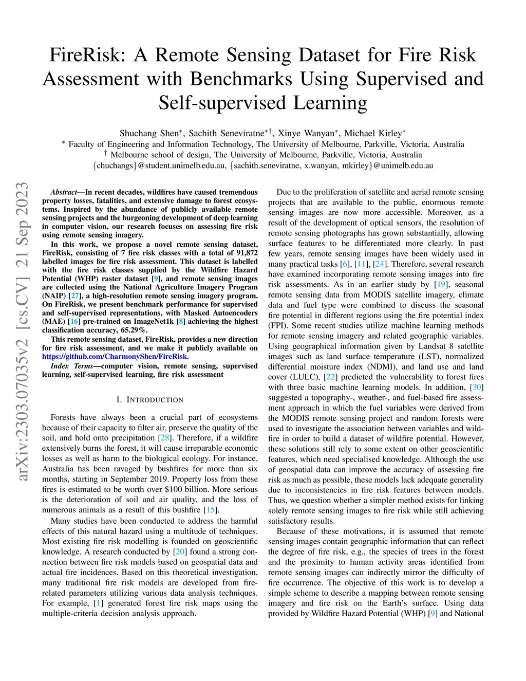 FireRisk: A Remote Sensing Dataset for Fire Risk Assessment with