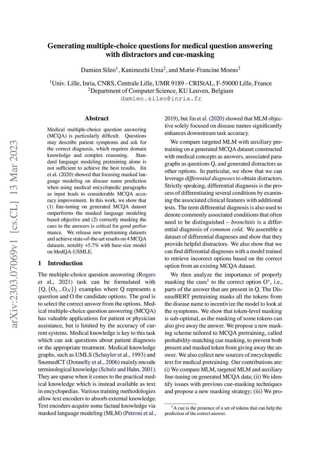 Medical multiple-choice question answering (MCQA) is particularly difficult. Questions may describe patient symptoms and ask for the correct diagnosis, which requires domain knowledge and complex reasoning. Standard language modeling pretraining alone is not sufficient to achieve the best results. \citet{jin2020disease} showed that focusing masked language modeling on disease name prediction when using medical encyclopedic paragraphs as input leads to considerable MCQA accuracy improvement. In this work, we show that (1) fine-tuning on generated MCQA dataset outperforms the masked language modeling based objective and (2) correctly masking the cues to the answers is critical for good performance. We release new pretraining datasets and achieve state-of-the-art results on 4 MCQA datasets, notably +5.7\% with base-size model on MedQA-USMLE.