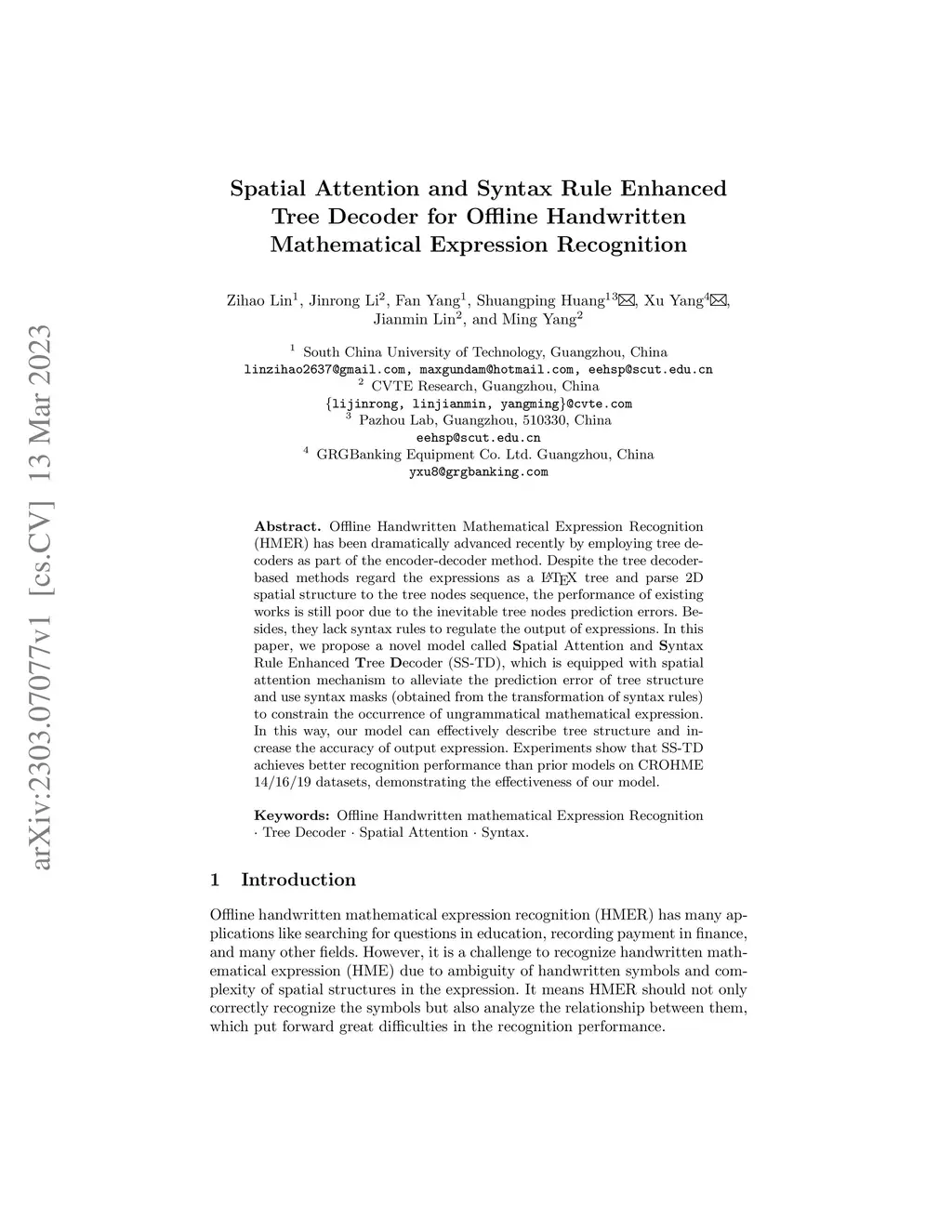 Spatial Attention and Syntax Rule Enhanced Tree Decoder for Offine