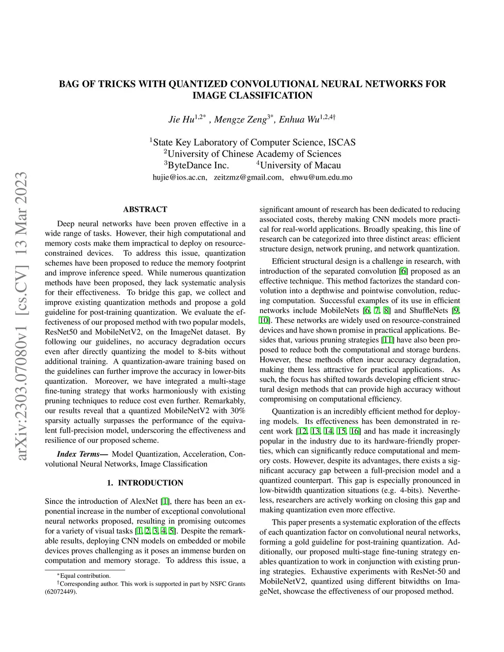 Bag of Tricks with Quantized Convolutional Neural Networks for image