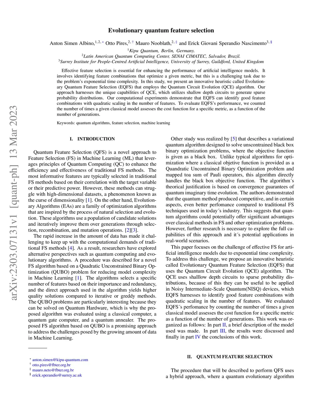 Evolutionary quantum feature selection