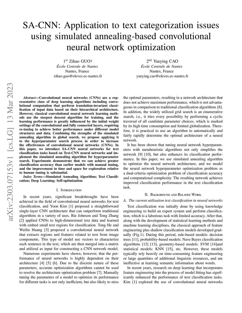SA-CNN: Application to text categorization issues using simulated