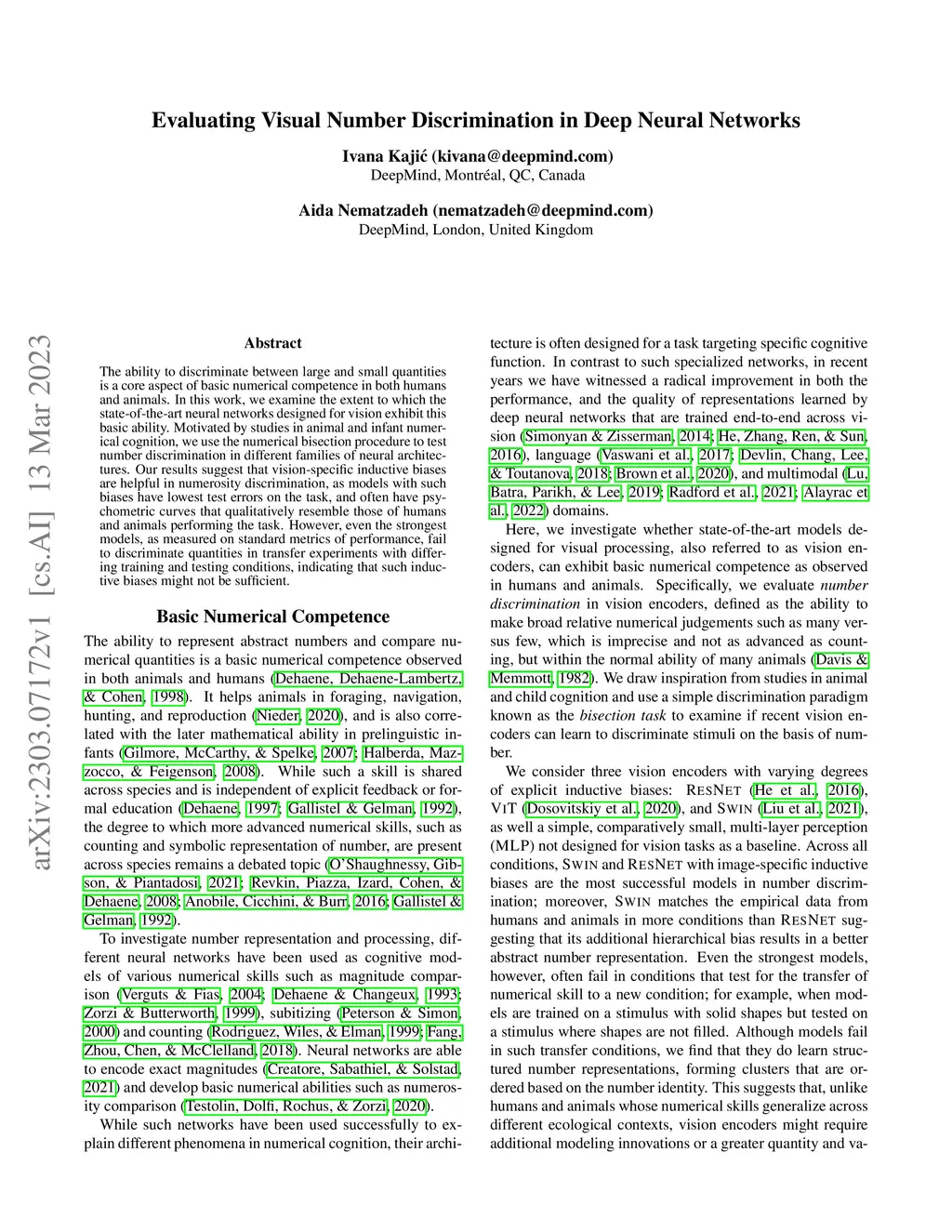 Evaluating Visual Number Discrimination in Deep Neural Networks