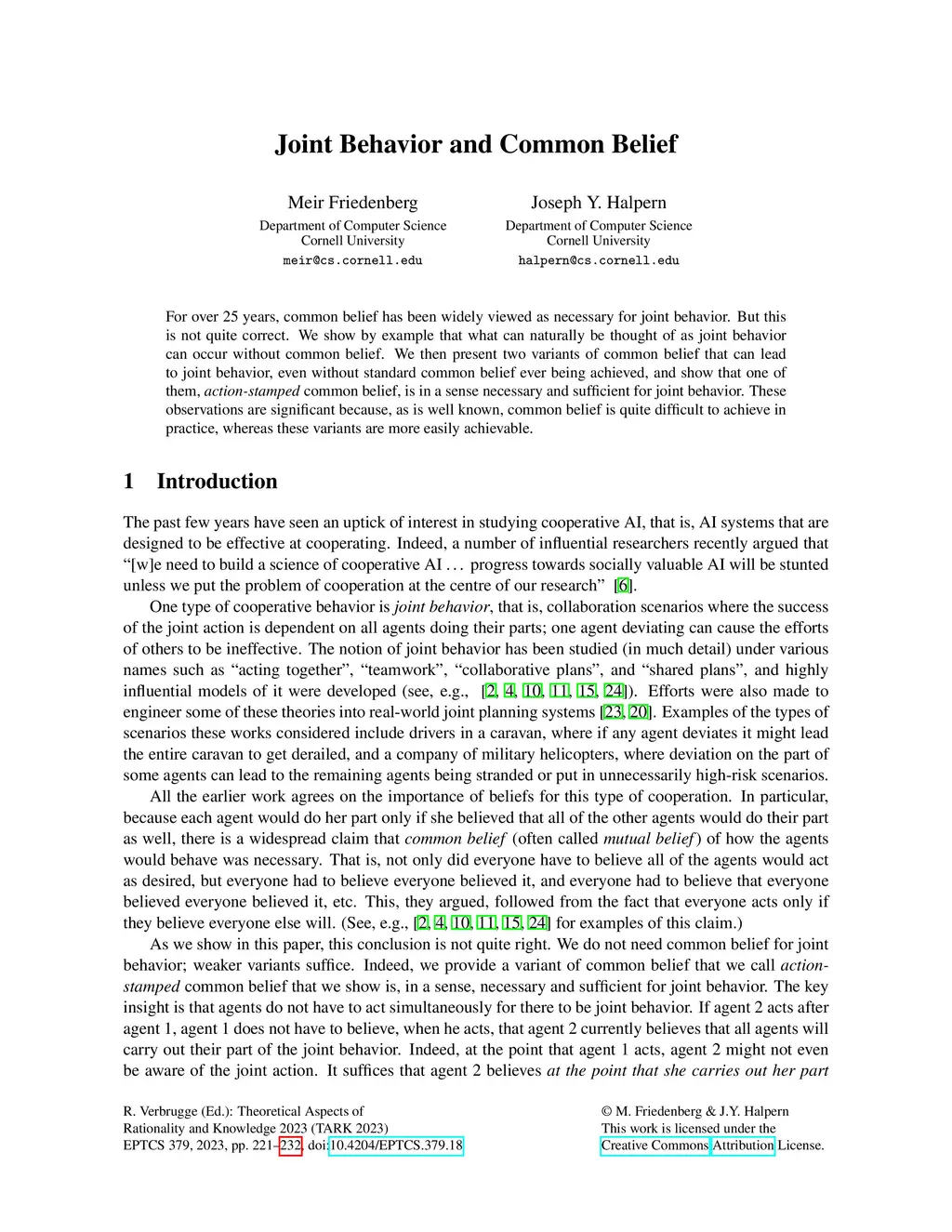 Theoretical Aspects of Rationality and Knowledge (TARK), 2023
