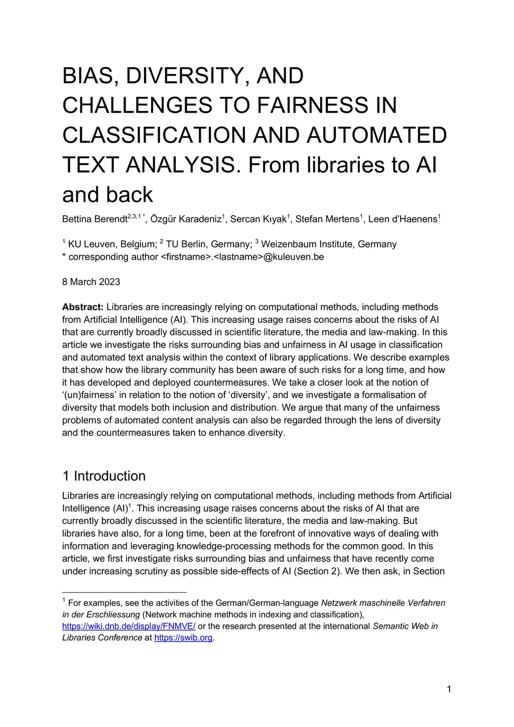 Libraries are increasingly relying on computational methods, including methods from Artificial Intelligence (AI). This increasing usage raises concerns about the risks of AI that are currently broadly discussed in scientific literature, the media and law-making. In this article we investigate the risks surrounding bias and unfairness in AI usage in classification and automated text analysis within the context of library applications. We describe examples that show how the library community has been aware of such risks for a long time, and how it has developed and deployed countermeasures. We take a closer look at the notion of '(un)fairness' in relation to the notion of 'diversity', and we investigate a formalisation of diversity that models both inclusion and distribution. We argue that many of the unfairness problems of automated content analysis can also be regarded through the lens of diversity and the countermeasures taken to enhance diversity.