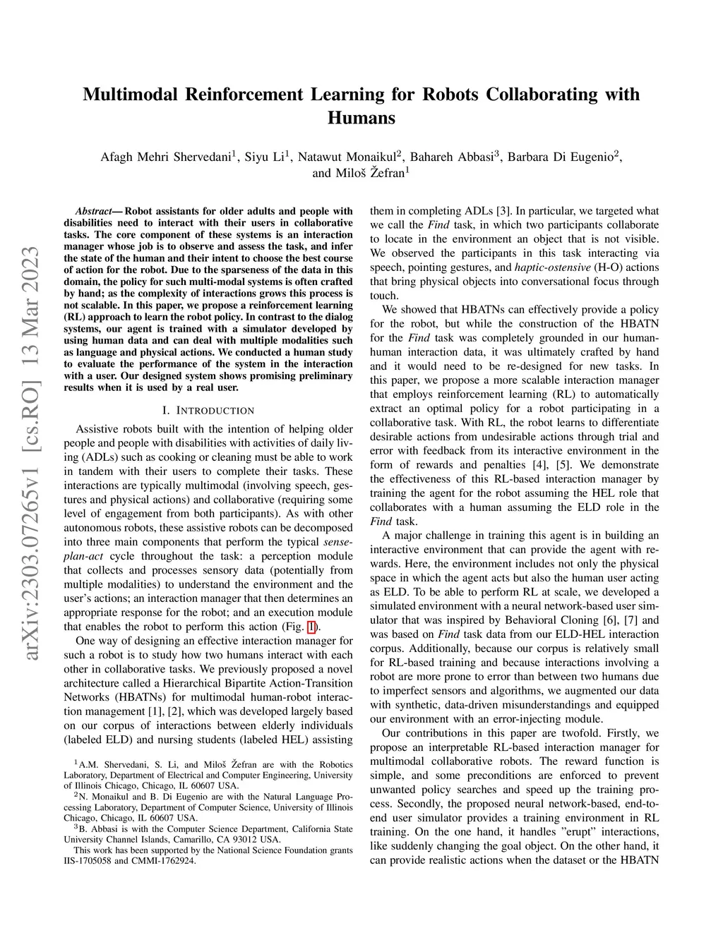 Multimodal Reinforcement Learning for Robots Collaborating with Humans