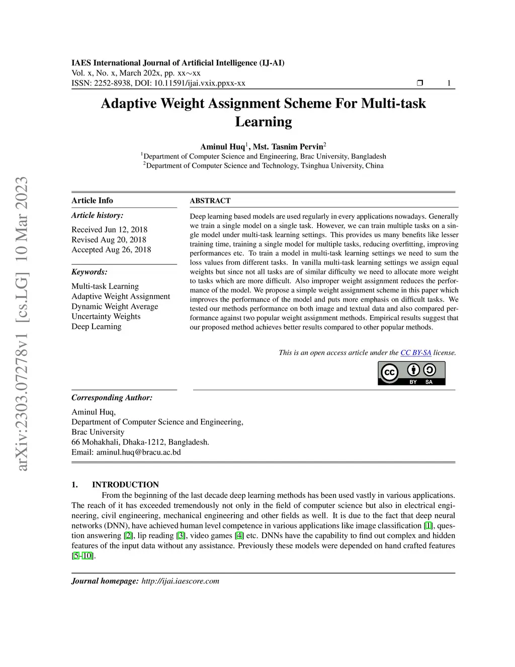 Adaptive Weight Assignment Scheme For Multi-task Learning