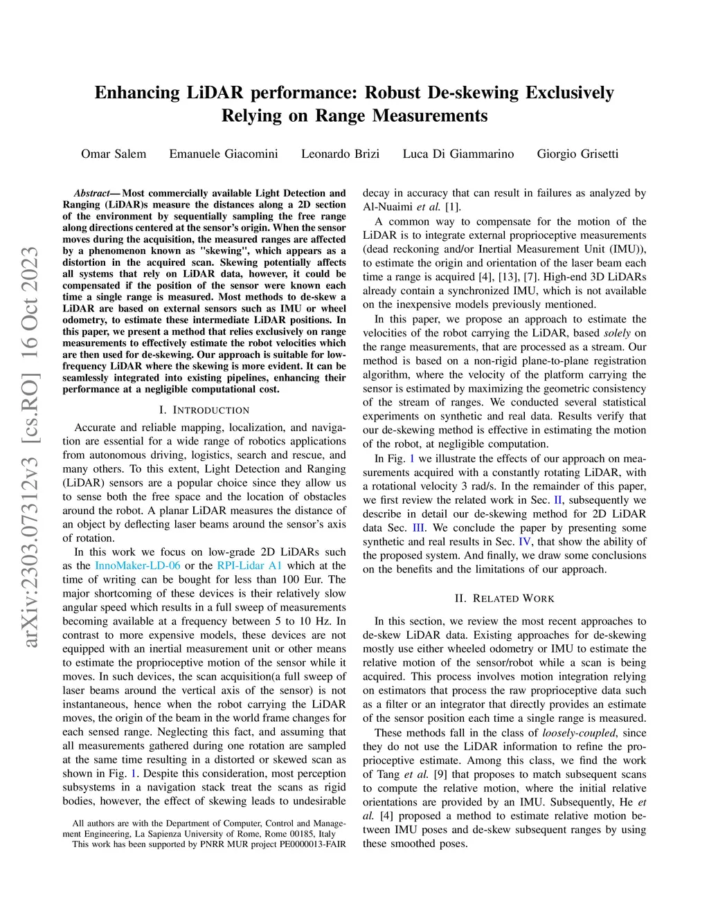 Enhancing LiDAR performance: Robust De-skewing Exclusively Relying on