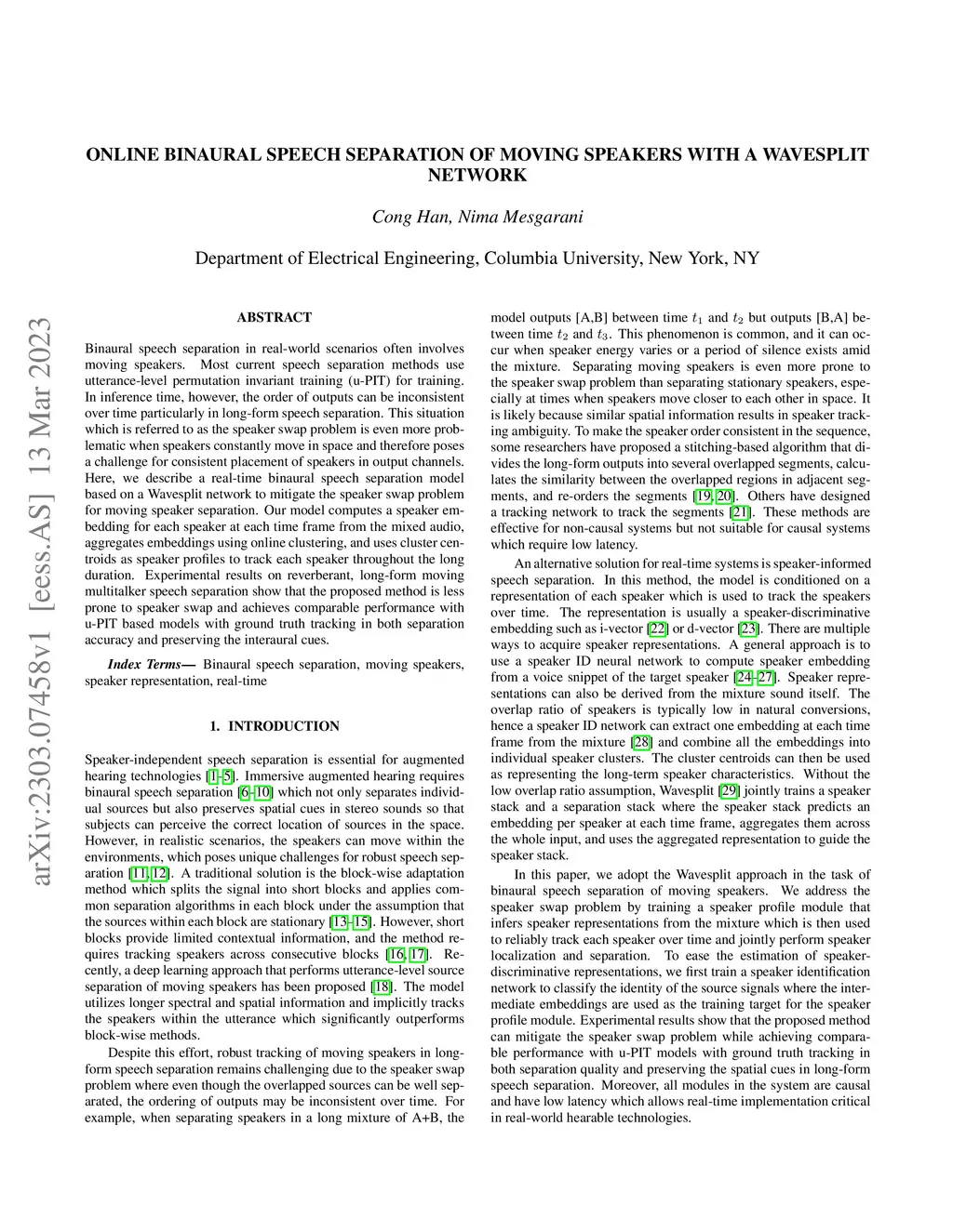 Online Binaural Speech Separation of Moving Speakers With a Wavesplit