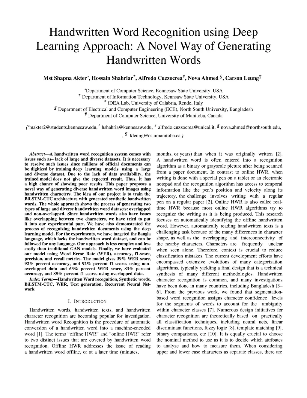 A handwritten word recognition system comes with issues such as lack of large and diverse datasets. It is necessary to resolve such issues since millions of official documents can be digitized by training deep learning models using a large and diverse dataset. Due to the lack of data availability, the trained model does not give the expected result. Thus, it has a high chance of showing poor results. This paper proposes a novel way of generating diverse handwritten word images using handwritten characters. The idea of our project is to train the BiLSTM-CTC architecture with generated synthetic handwritten words. The whole approach shows the process of generating two types of large and diverse handwritten word datasets: overlapped and non-overlapped. Since handwritten words also have issues like overlapping between two characters, we have tried to put it into our experimental part. We have also demonstrated the process of recognizing handwritten documents using the deep learning model. For the experiments, we have targeted the Bangla language, which lacks the handwritten word dataset, and can be followed for any language. Our approach is less complex and less costly than traditional GAN models. Finally, we have evaluated our model using Word Error Rate (WER), accuracy, f1-score, precision, and recall metrics. The model gives 39% WER score, 92% percent accuracy, and 92% percent f1 scores using non-overlapped data and 63% percent WER score, 83% percent accuracy, and 85% percent f1 scores using overlapped data.