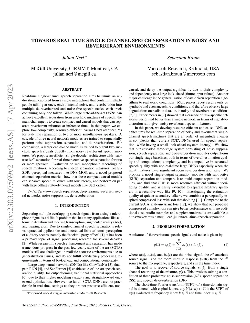 Towards Real-Time Single-Channel Speech Separation in Noisy and