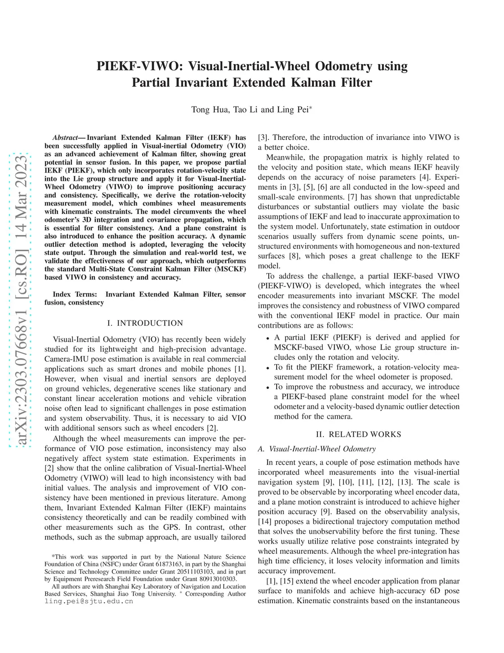 PIEKF-VIWO: Visual-Inertial-Wheel Odometry using Partial Invariant