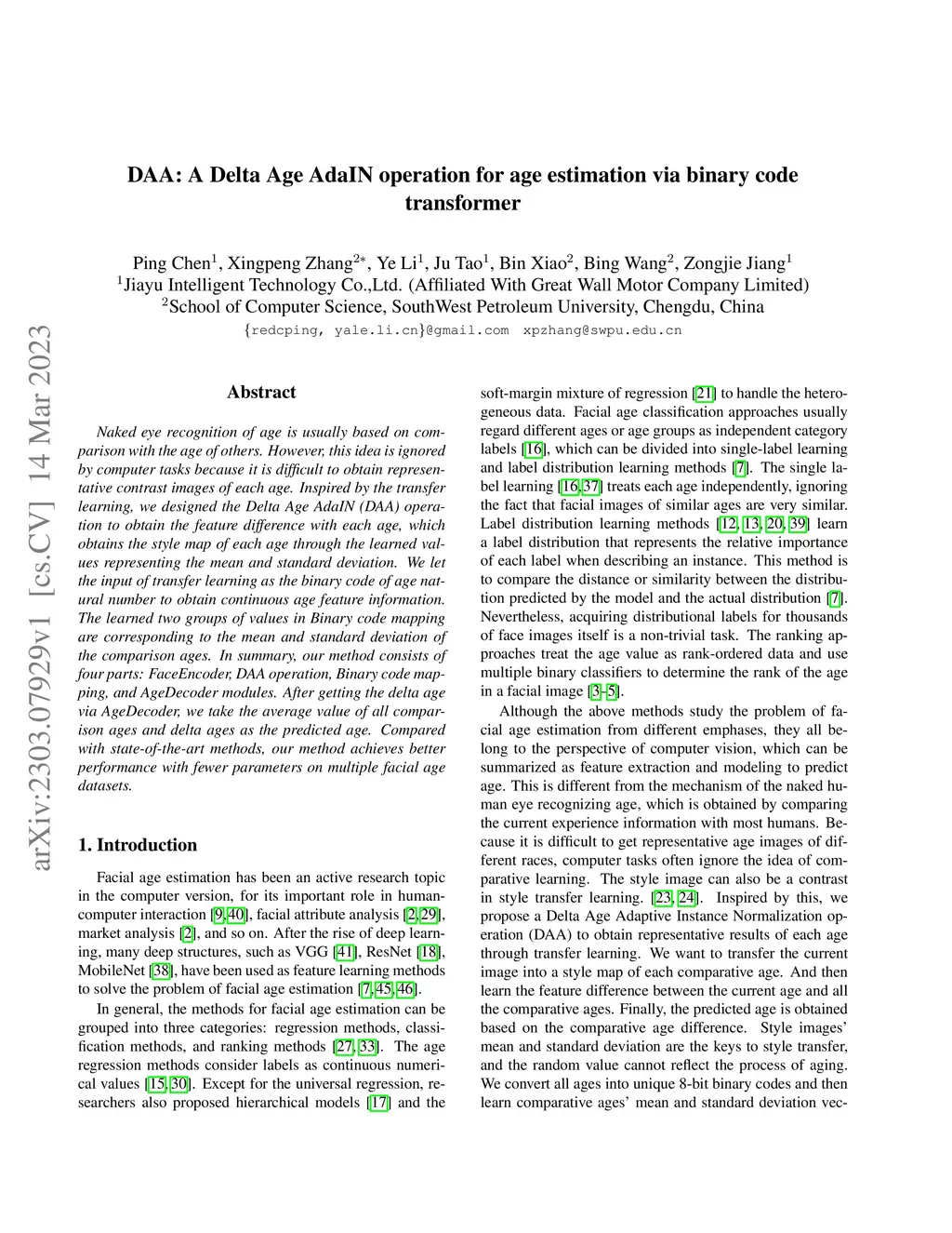 DAA: A Delta Age AdaIN operation for age estimation via binary code