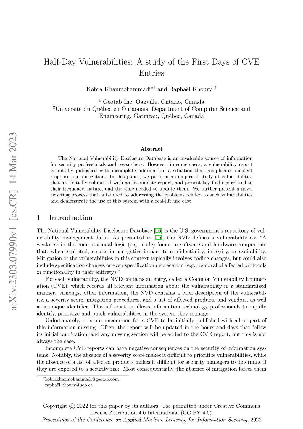 Half-Day Vulnerabilities: A study of the First Days of CVE Entries