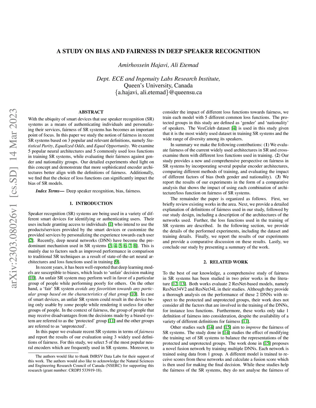 A Study on Bias and Fairness In Deep Speaker Recognition