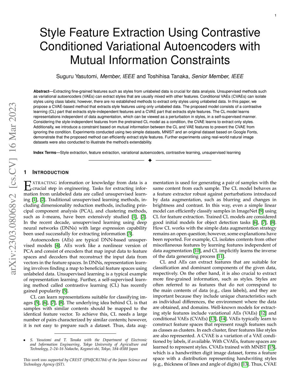 Style Feature Extraction Using Contrastive Conditioned Variational