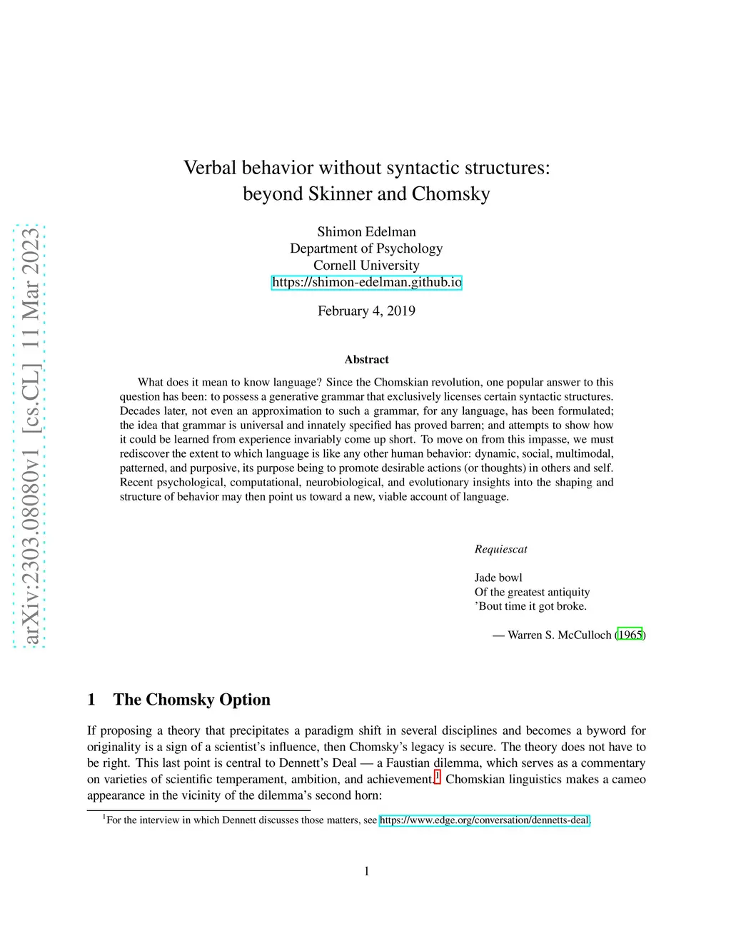 Verbal behavior without syntactic structures: beyond Skinner and Chomsky
