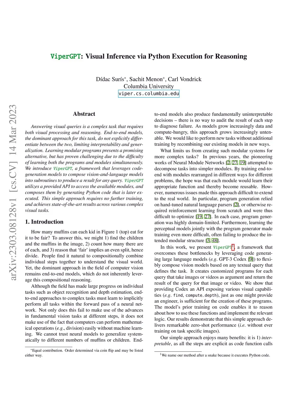 ViperGPT: Visual Inference via Python Execution for Reasoning
