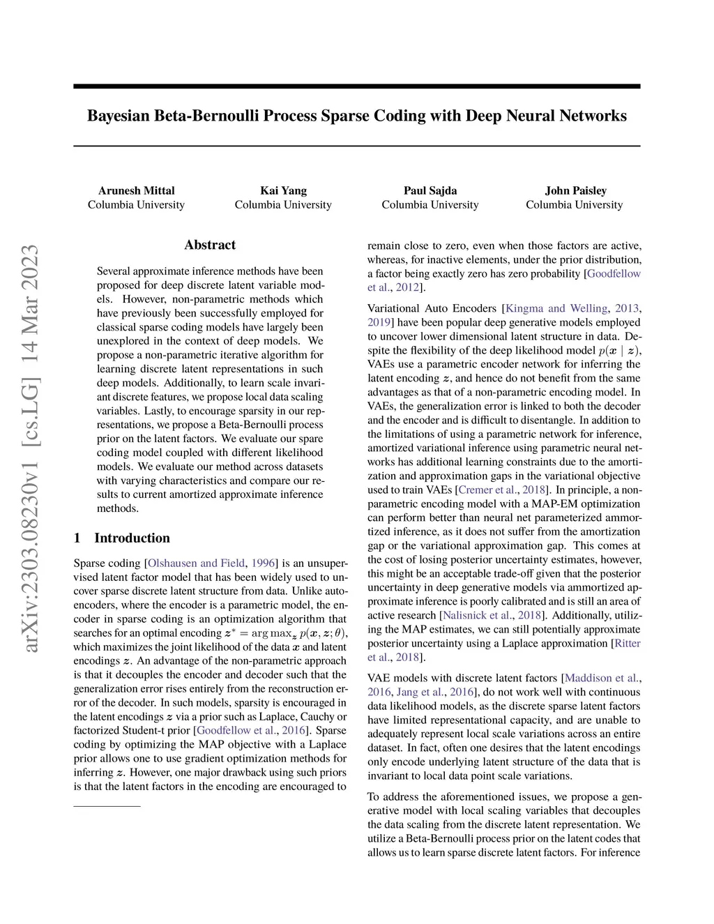 Bayesian Beta-Bernoulli Process Sparse Coding with Deep Neural Networks