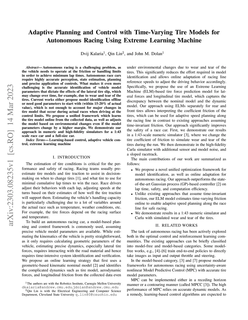 Adaptive Planning and Control with Time-Varying Tire Models for