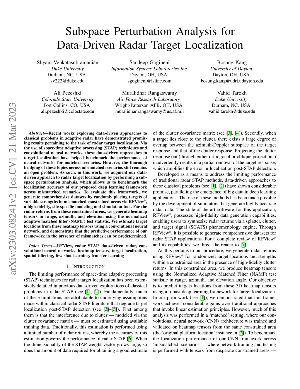 Recent works exploring data-driven approaches to classical problems in adaptive radar have demonstrated promising results pertaining to the task of radar target localization. Via the use of space-time adaptive processing (STAP) techniques and convolutional neural networks, these data-driven approaches to target localization have helped benchmark the performance of neural networks for matched scenarios. However, the thorough bridging of these topics across mismatched scenarios still remains an open problem. As such, in this work, we augment our data-driven approach to radar target localization by performing a subspace perturbation analysis, which allows us to benchmark the localization accuracy of our proposed deep learning framework across mismatched scenarios. To evaluate this framework, we generate comprehensive datasets by randomly placing targets of variable strengths in mismatched constrained areas via RFView, a high-fidelity, site-specific modeling and simulation tool. For the radar returns from these constrained areas, we generate heatmap tensors in range, azimuth, and elevation using the normalized adaptive matched filter (NAMF) test statistic. We estimate target locations from these heatmap tensors using a convolutional neural network, and demonstrate that the predictive performance of our framework in the presence of mismatches can be predetermined.