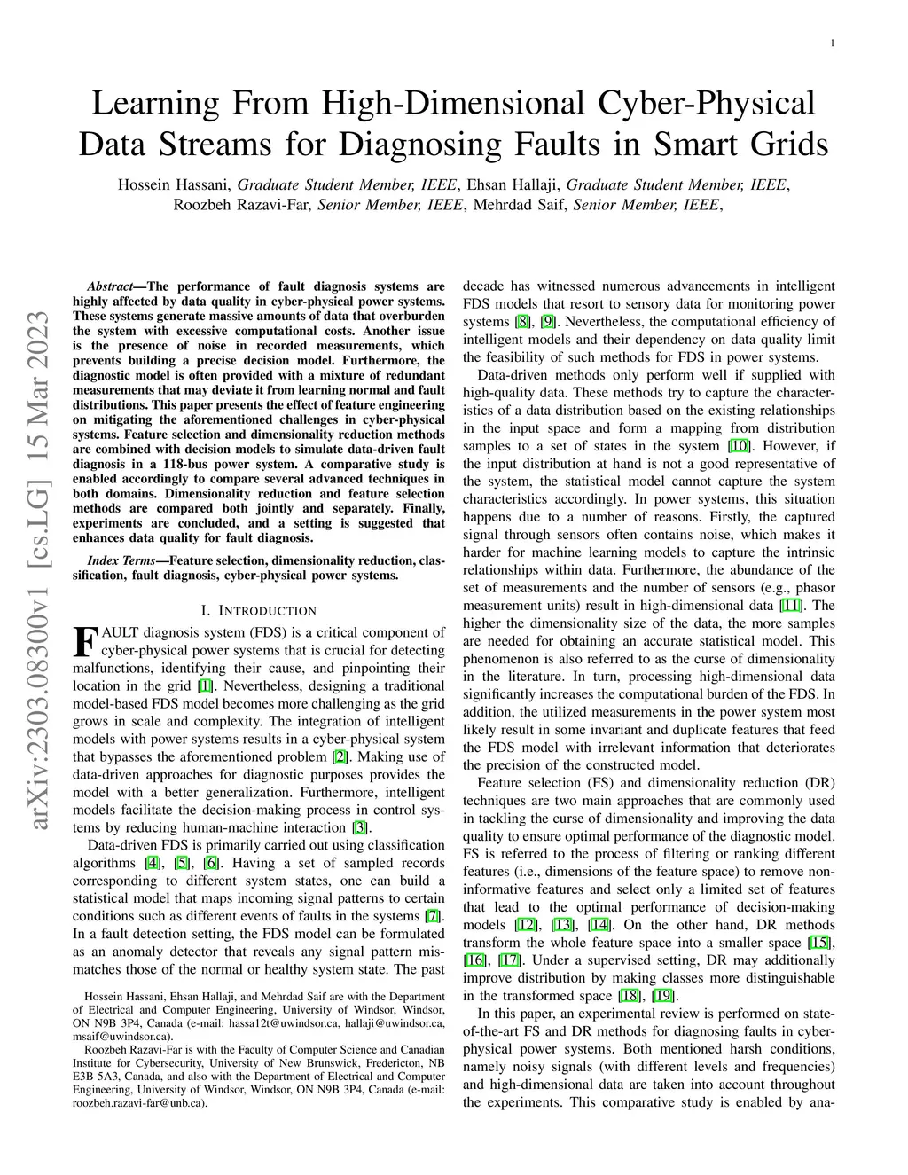The performance of fault diagnosis systems is highly affected by data quality in cyber-physical power systems. These systems generate massive amounts of data that overburden the system with excessive computational costs. Another issue is the presence of noise in recorded measurements, which prevents building a precise decision model. Furthermore, the diagnostic model is often provided with a mixture of redundant measurements that may deviate it from learning normal and fault distributions. This paper presents the effect of feature engineering on mitigating the aforementioned challenges in cyber-physical systems. Feature selection and dimensionality reduction methods are combined with decision models to simulate data-driven fault diagnosis in a 118-bus power system. A comparative study is enabled accordingly to compare several advanced techniques in both domains. Dimensionality reduction and feature selection methods are compared both jointly and separately. Finally, experiments are concluded, and a setting is suggested that enhances data quality for fault diagnosis.