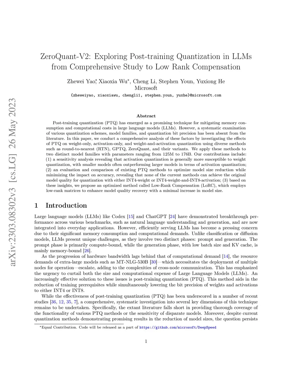 ZeroQuant-V2: Exploring Post-training Quantization in LLMs from