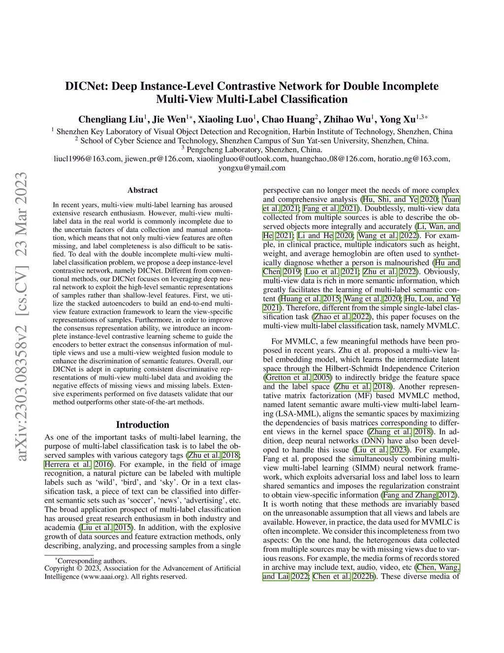 DICNet: Deep Instance-Level Contrastive Network for Double Incomplete