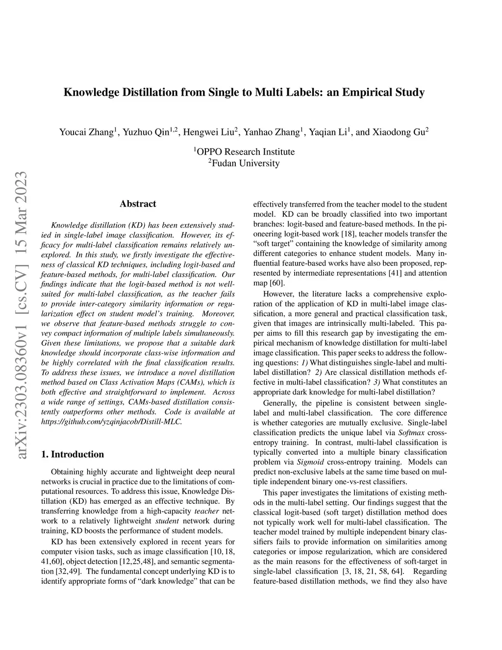 Knowledge Distillation from Single to Multi Labels: an Empirical Study