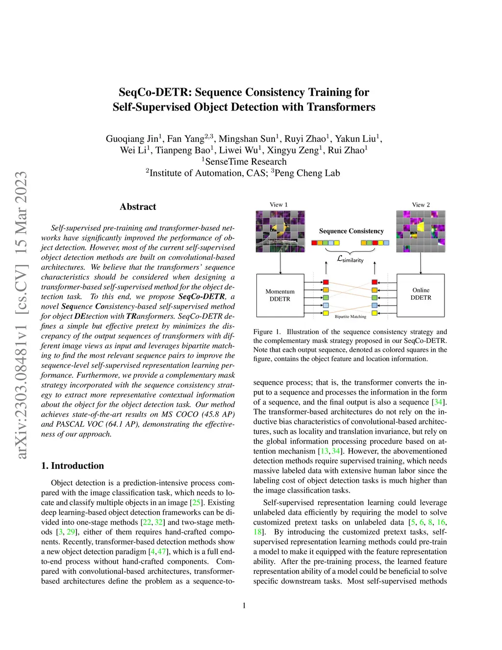 SeqCo-DETR: Sequence Consistency Training for Self-Supervised Object