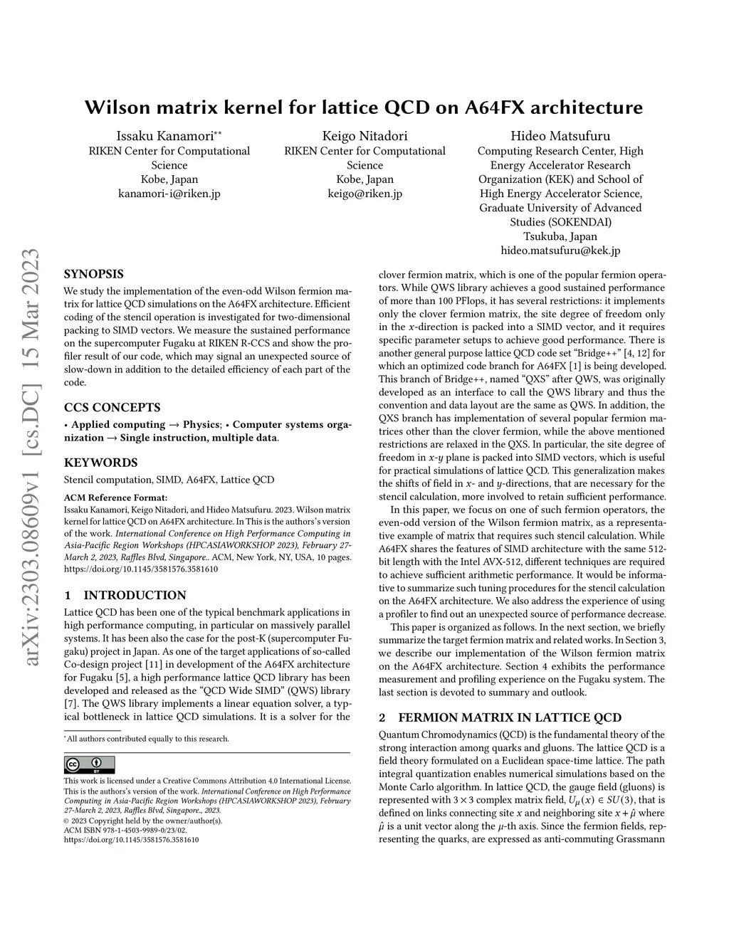 We study the implementation of the even-odd Wilson fermion matrix for lattice QCD simulations on the A64FX architecture. Efficient coding of the stencil operation is investigated for two-dimensional packing to SIMD vectors. We measure the sustained performance on the supercomputer Fugaku at RIKEN R-CCS and show the profiler result of our code, which may signal an unexpected source of slow-down in addition to the detailed efficiency of each part of the code.