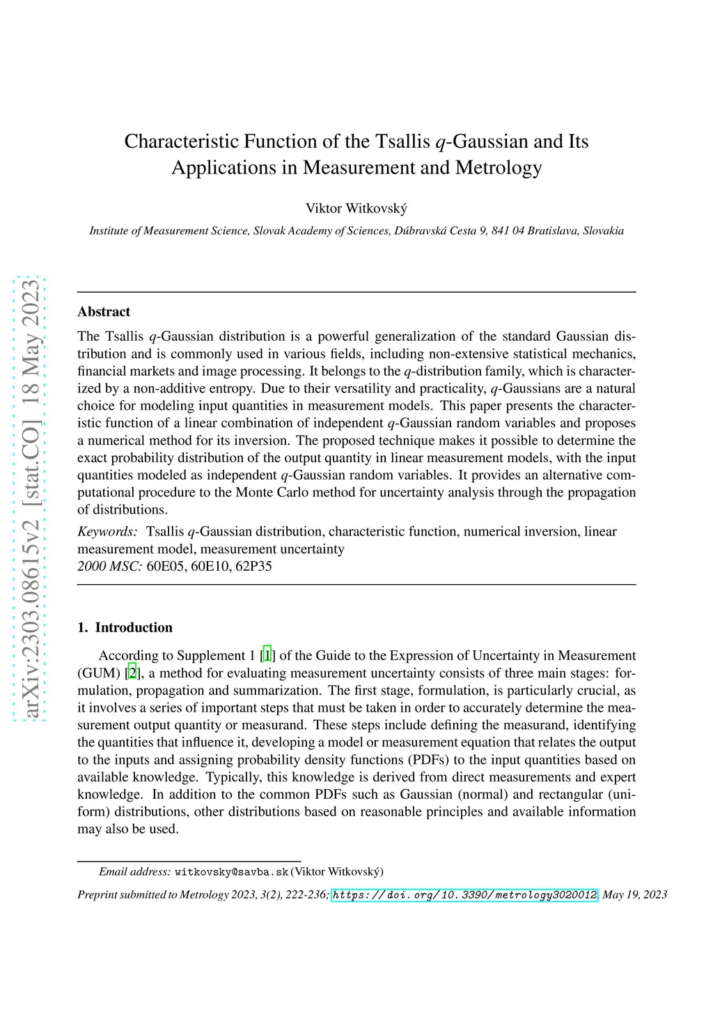 The Tsallis -Gaussian distribution is a powerful generalization of the standard Gaussian distribution and is commonly used in various fields, including non-extensive statistical mechanics, financial markets and image processing. It belongs to the -distribution family, which is characterized by a non-additive entropy. Due to their versatility and practicality, -Gaussians are a natural choice for modeling input quantities in measurement models. This paper presents the characteristic function of a linear combination of independent -Gaussian random variables and proposes a numerical method for its inversion. The proposed technique makes it possible to determine the exact probability distribution of the output quantity in linear measurement models, with the input quantities modeled as independent -Gaussian random variables. It provides an alternative computational procedure to the Monte Carlo method for uncertainty analysis through the propagation of distributions.