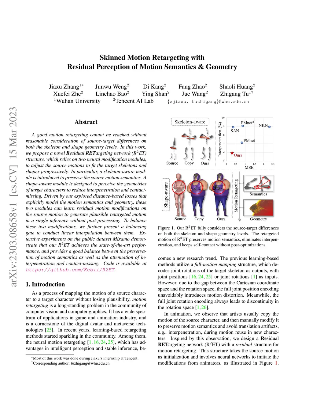 Skinned Motion Retargeting with Residual Perception of Motion Semantics