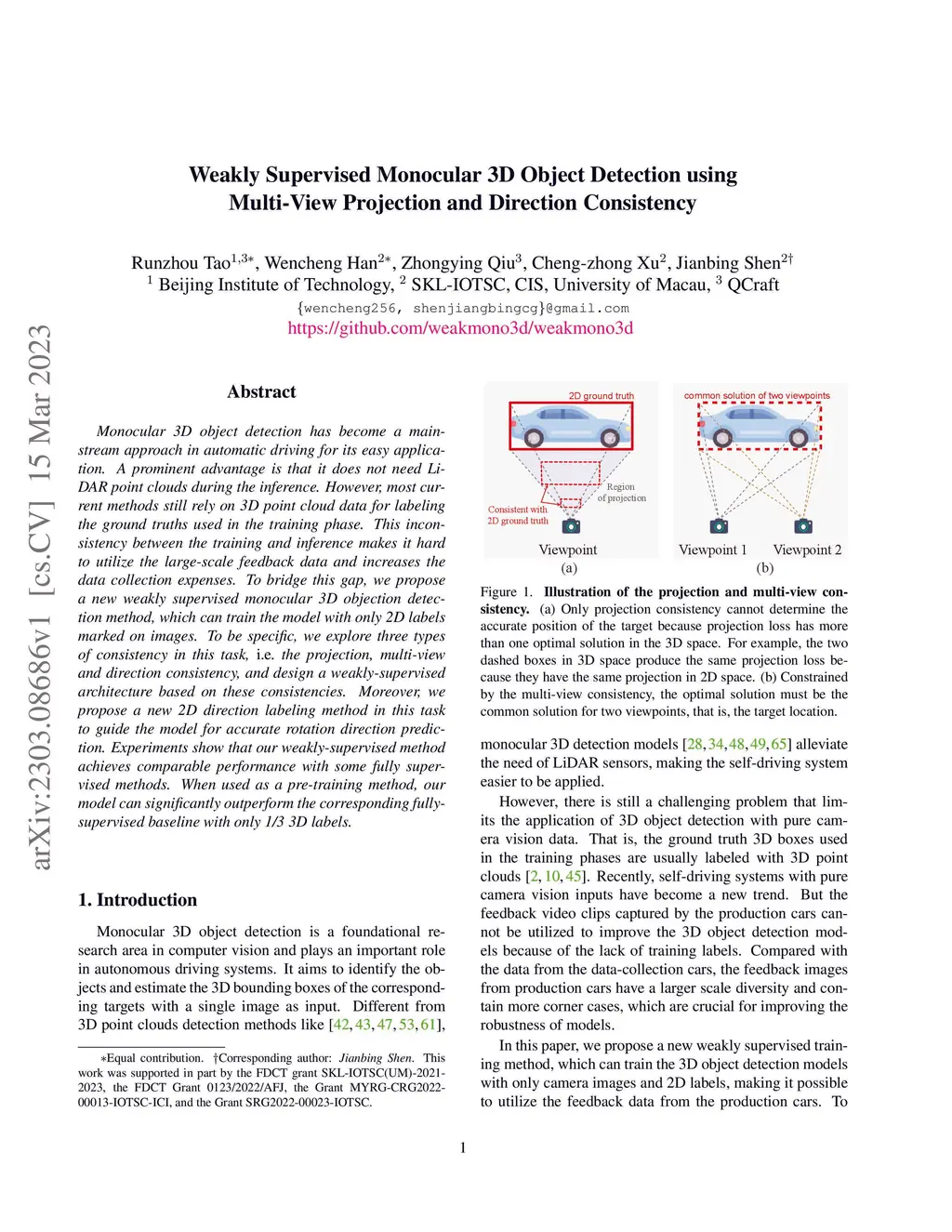 Weakly Supervised Monocular 3D Object Detection using Multi-View