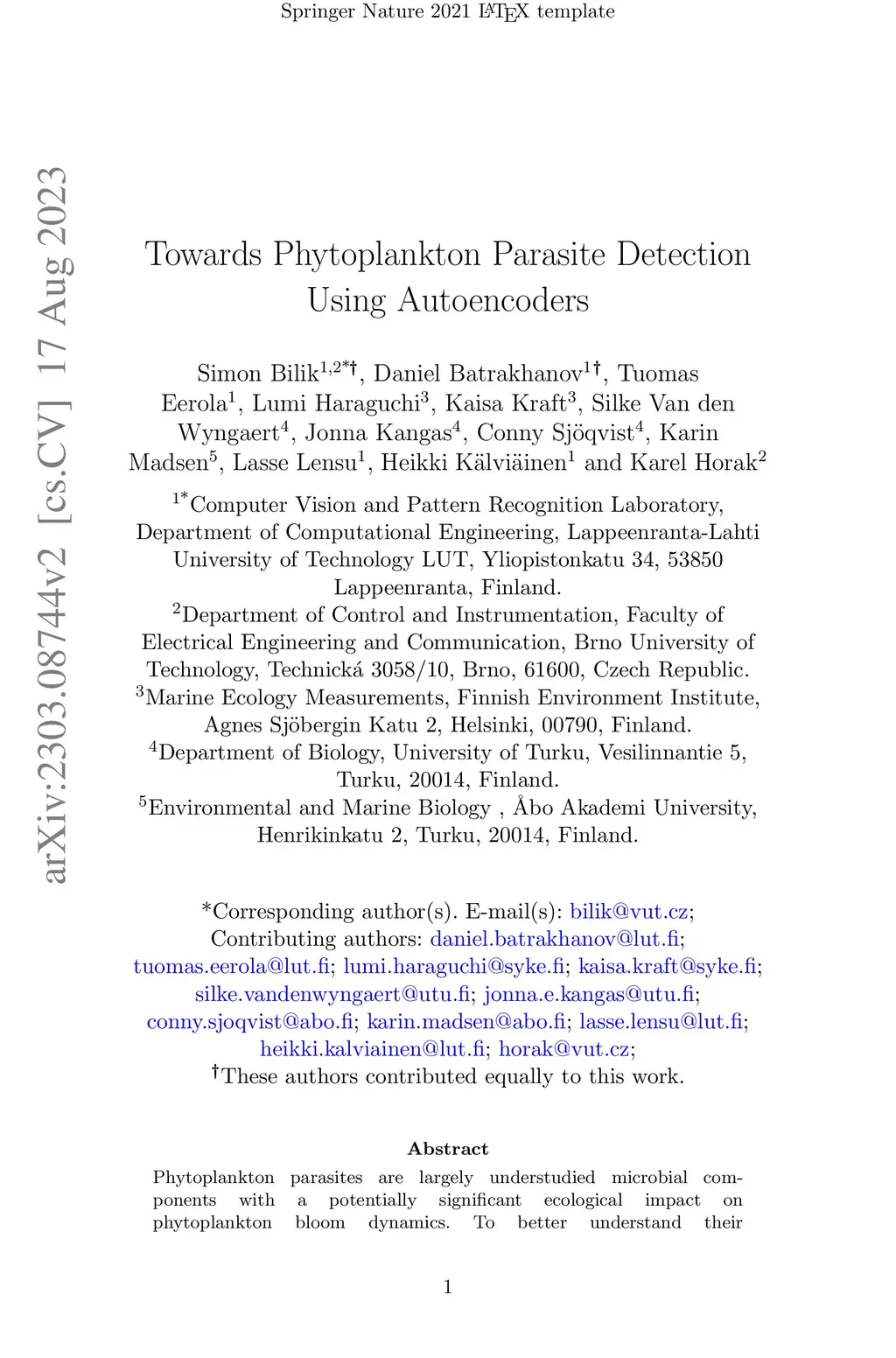 Towards Phytoplankton Parasite Detection Using Autoencoders