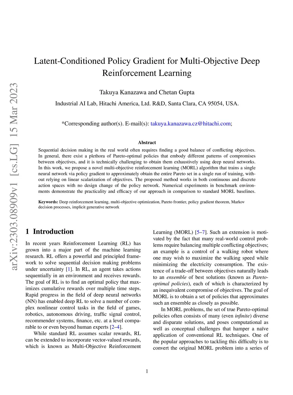 Latent-Conditioned Policy Gradient for Multi-Objective Deep