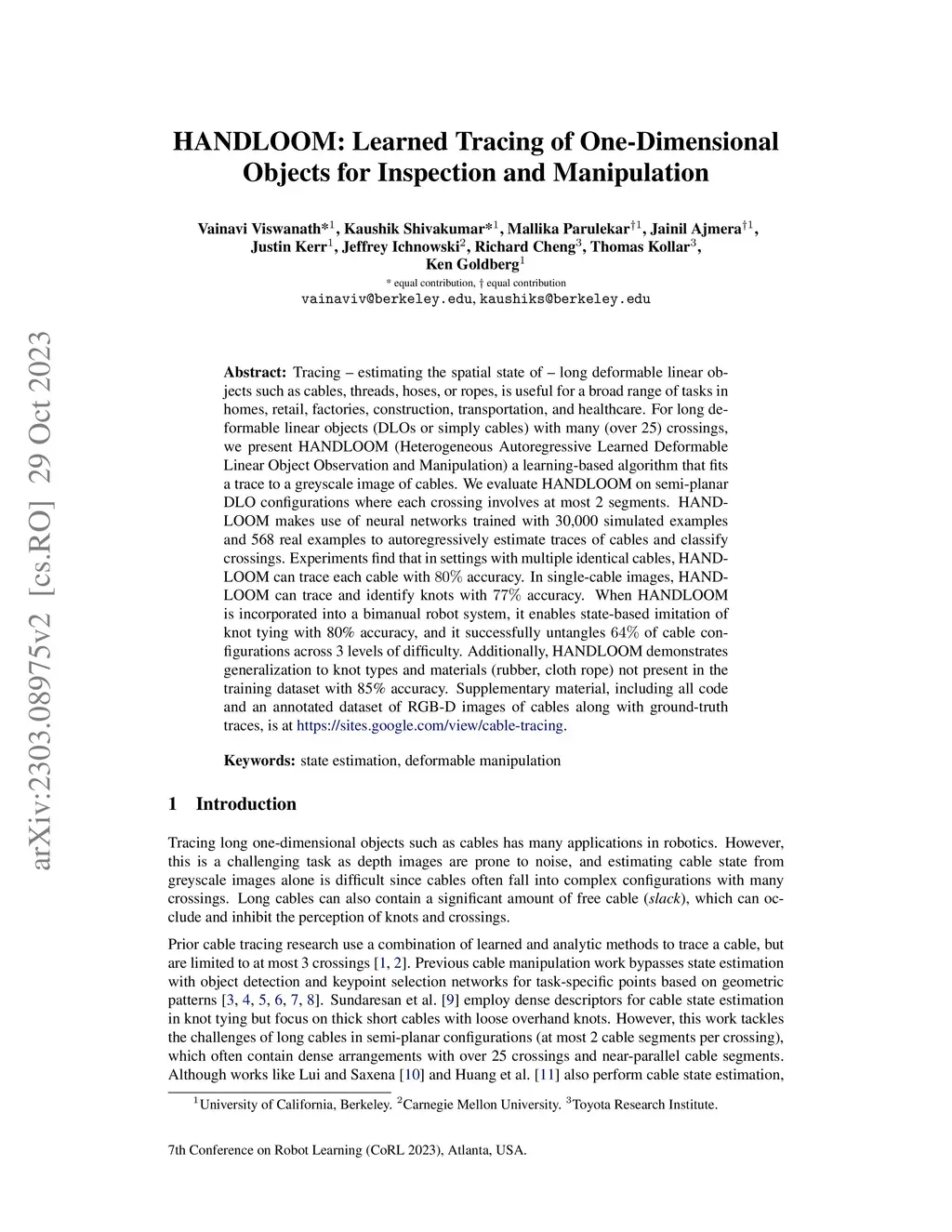 HANDLOOM: Learned Tracing of One-Dimensional Objects for Inspection and