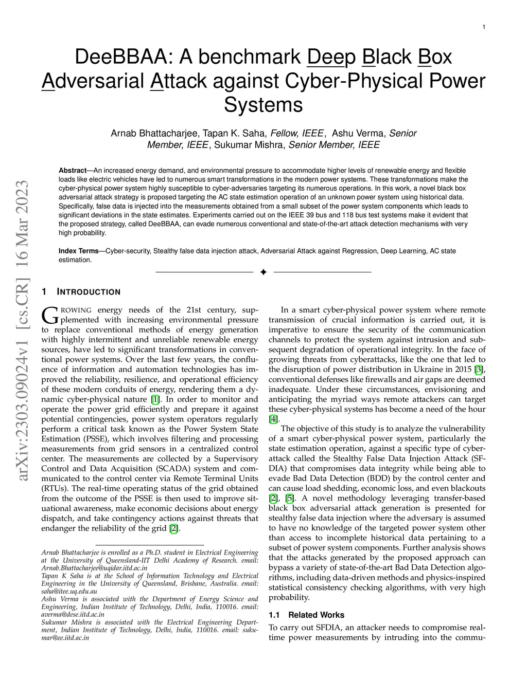 An increased energy demand, and environmental pressure to accommodate higher levels of renewable energy and flexible loads like electric vehicles have led to numerous smart transformations in the modern power systems. These transformations make the cyber-physical power system highly susceptible to cyber-adversaries targeting its numerous operations. In this work, a novel black box adversarial attack strategy is proposed targeting the AC state estimation operation of an unknown power system using historical data. Specifically, false data is injected into the measurements obtained from a small subset of the power system components which leads to significant deviations in the state estimates. Experiments carried out on the IEEE 39 bus and 118 bus test systems make it evident that the proposed strategy, called DeeBBAA, can evade numerous conventional and state-of-the-art attack detection mechanisms with very high probability.