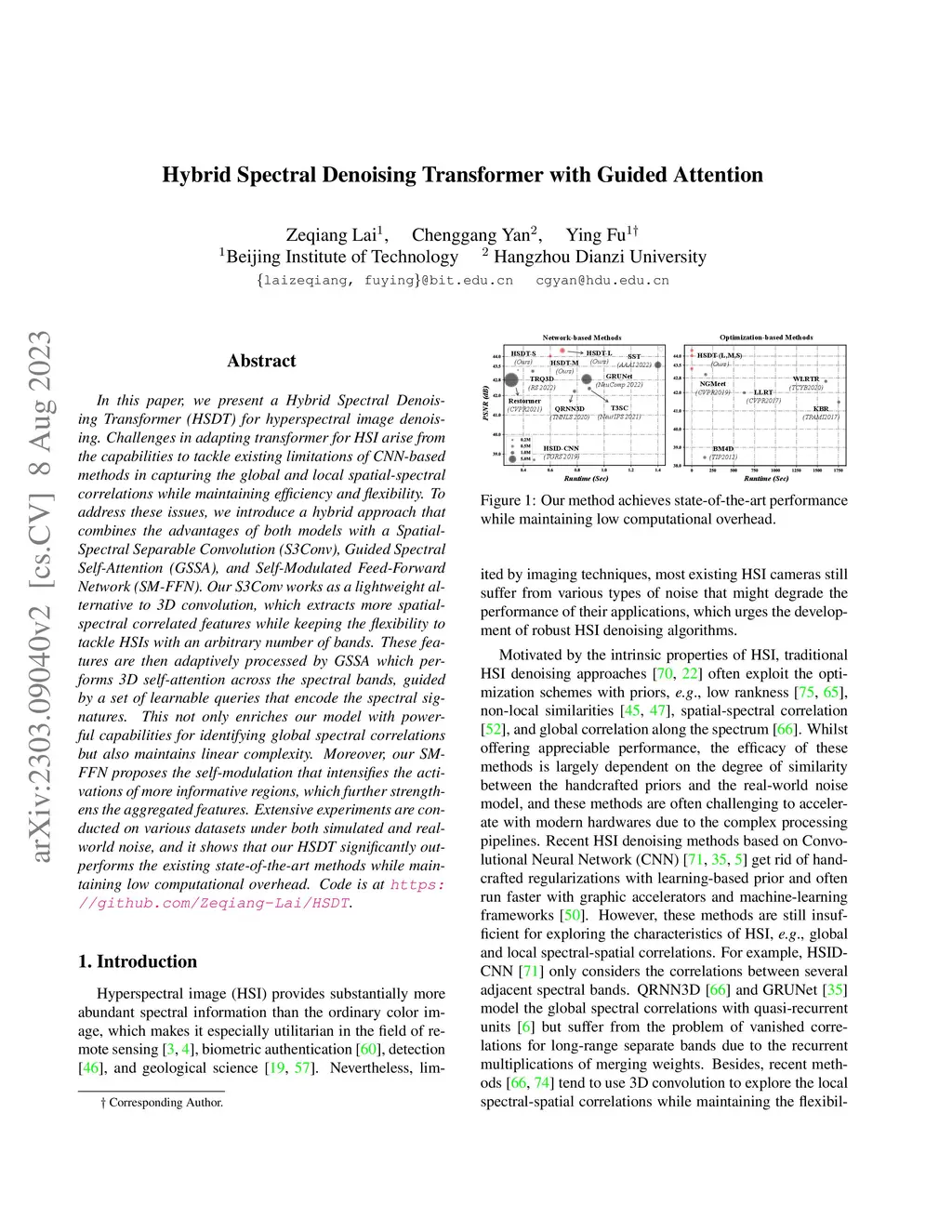 Hybrid Spectral Denoising Transformer with Guided Attention